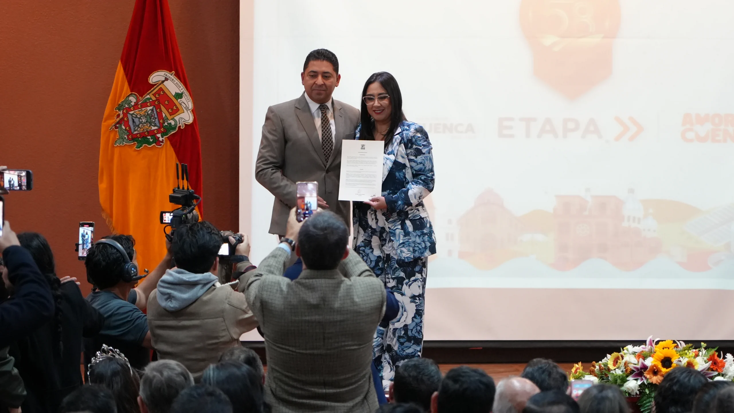 La Empresa Pública Municipal ETAPA EP conmemoró sus 58 años de servicio a la ciudad, reafirmando su compromiso con el cuidado del agua, la protección del ambiente y la calidad de vida de las familias cuencanas. La Sesión Solemne se desarrolló con la presencia de la vicealcaldesa de Cuenca, Marisol Peñaloza, autoridades locales, servidores públicos y ciudadanía.