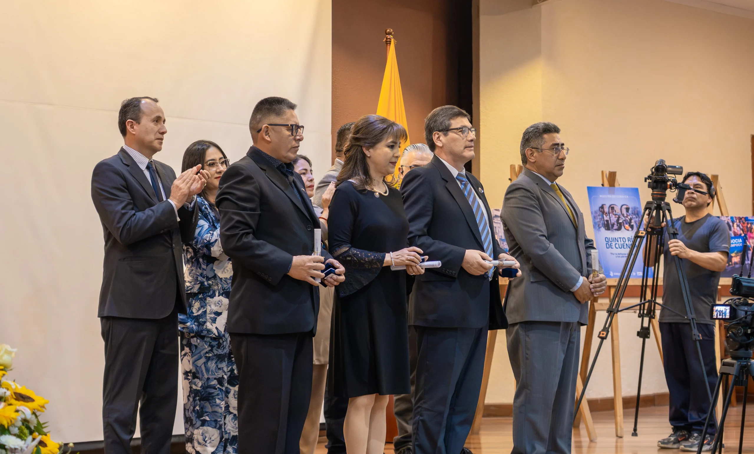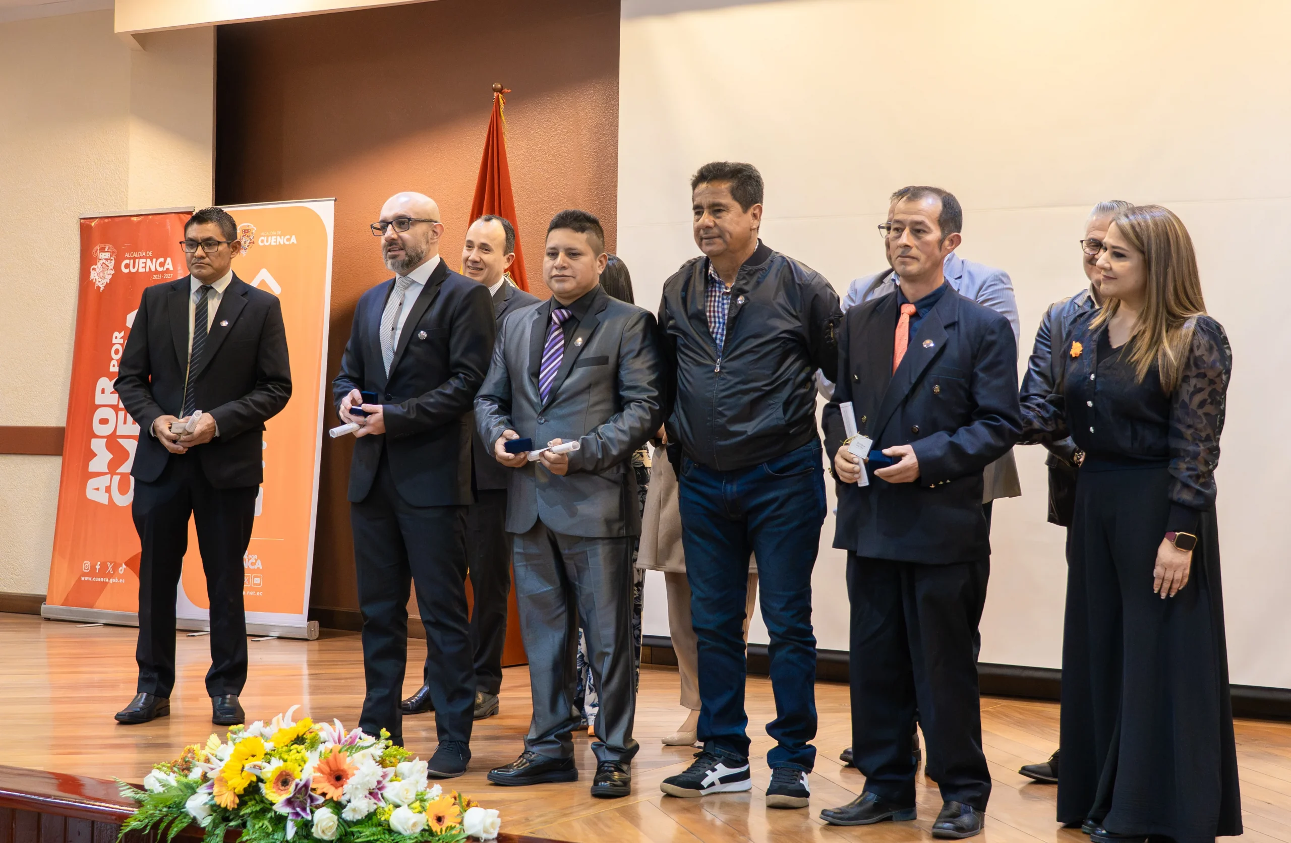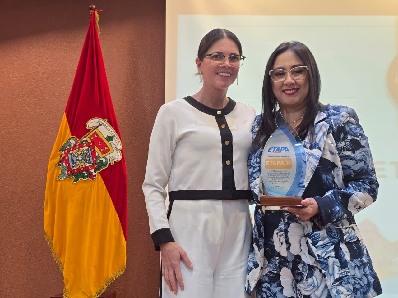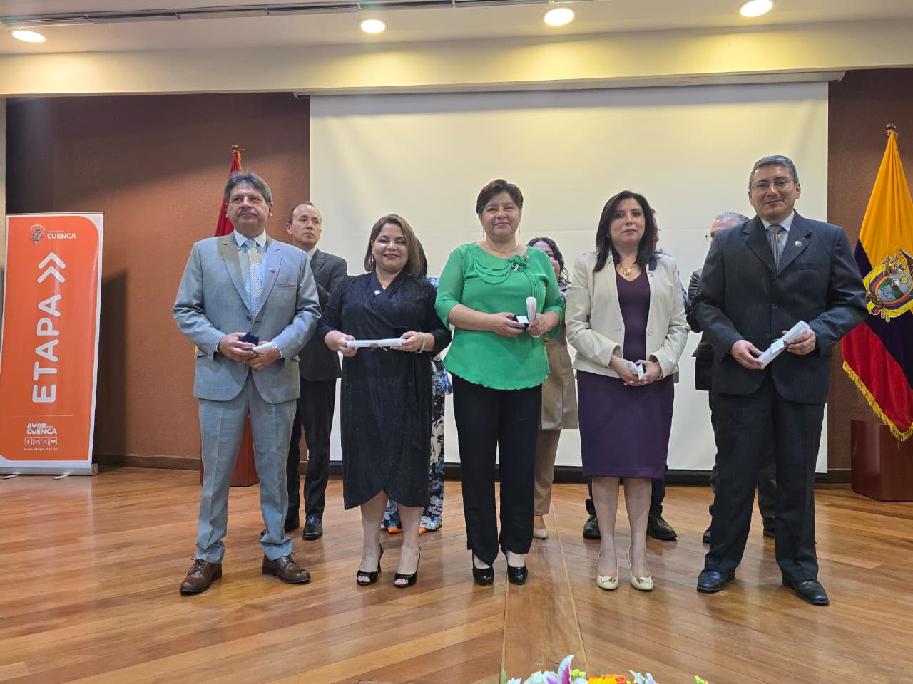 Durante el acto, se rindió un emotivo homenaje a las y los funcionarios que cumplieron 25, 30 y 35 años de servicio, reconociendo su entrega, constancia y vocación pública, fundamentales para que el agua y la conectividad llegue cada día de forma segura a más de 165 mil usuarios en el cantón Cuenca.