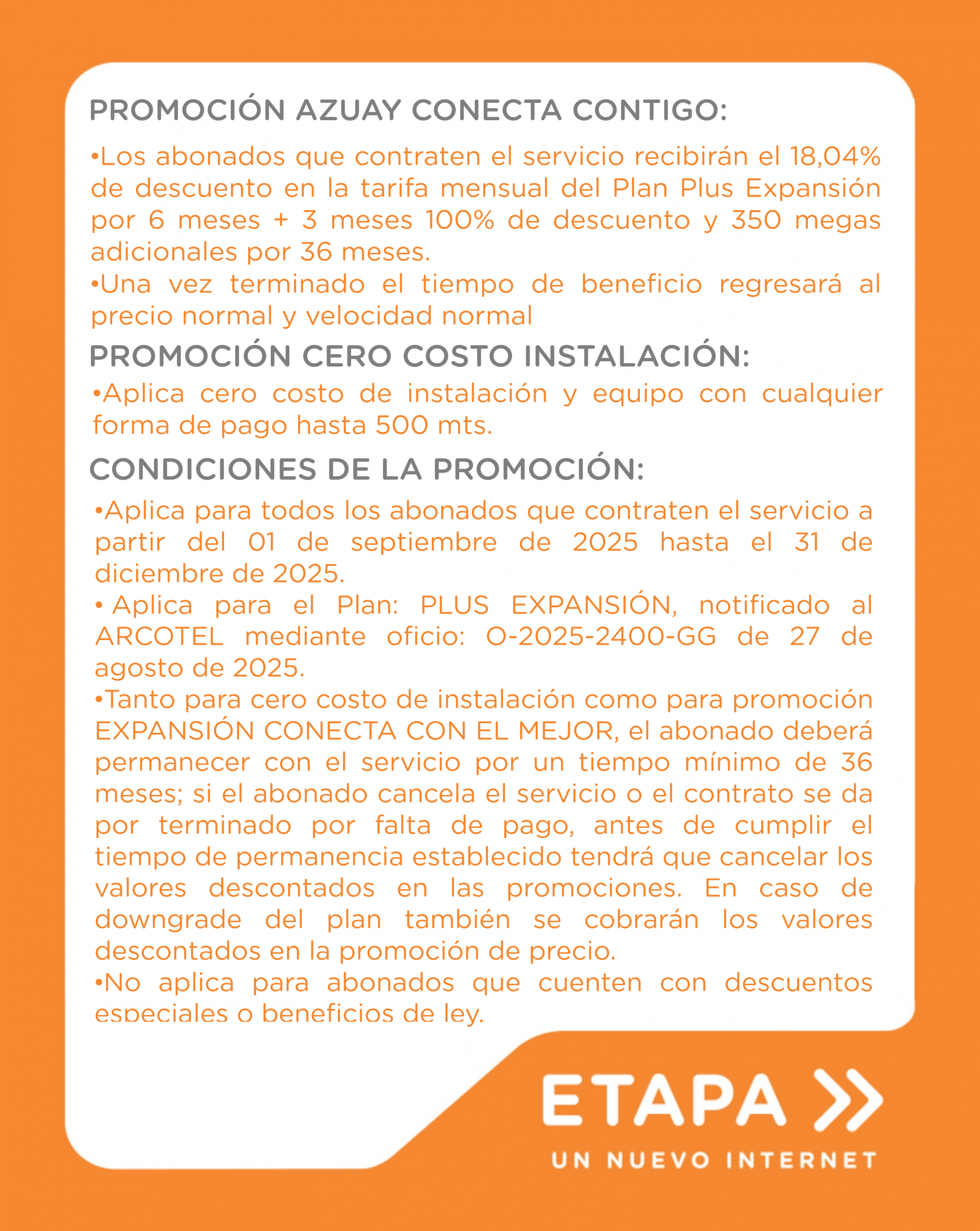 - Velocidad Normal 350 megas desde el mes 37